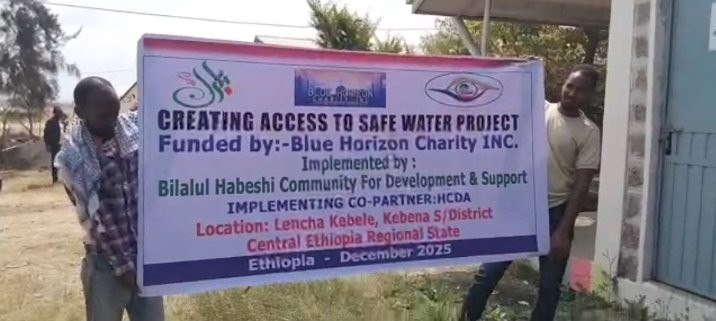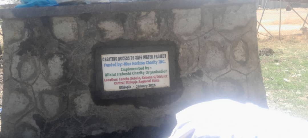 The Water Well completed in January 2026 was funded by Blue Horizon Charity, Inc. and implemented by Bilalul Habeshi Community for Development & Support, with implementing Co-Partner HCDA, now serving Lencha Health Center and more than 300 households in Lencha Kebele. (See full report in the Spotlight/Galery link).